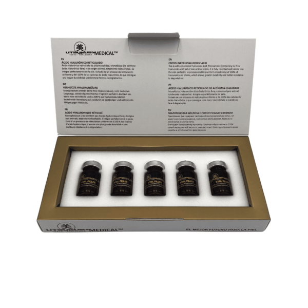 Hyal Filler Serum für eine professionelle Microneedling Behandlung (Dermapen) und Mesotherapie (Dermaroller). Eine Ampulle enthält 5 ml Serum – dies sollte für 3 bis 5 Anwendungen reichen. Ebenfalls erhalten sie pro Ampulle eine Spritze und eine Nadel zur sterilen Entnahme des Serums.
